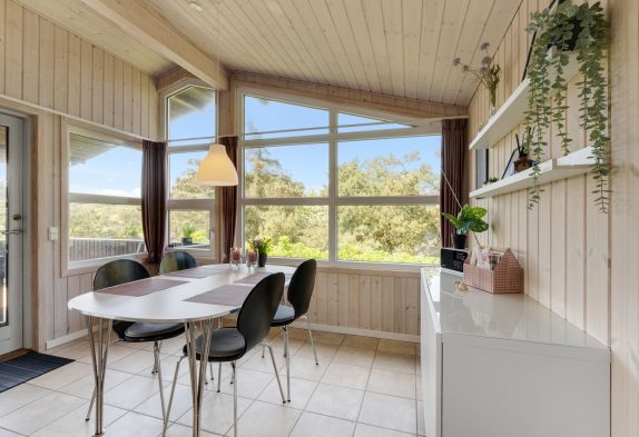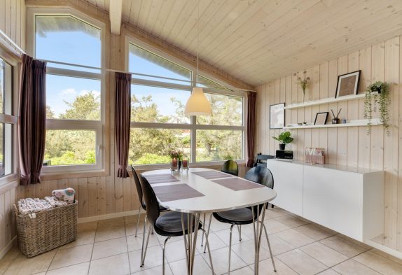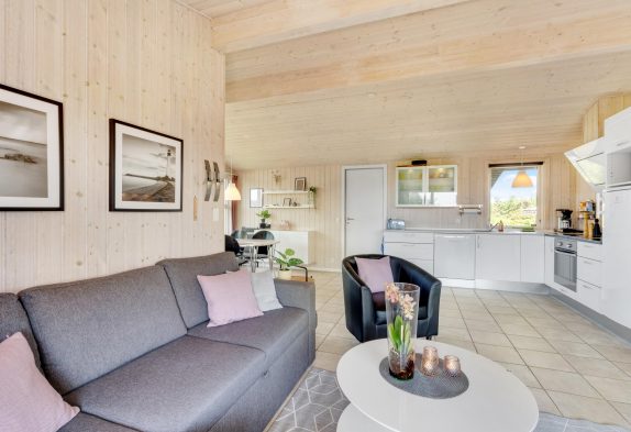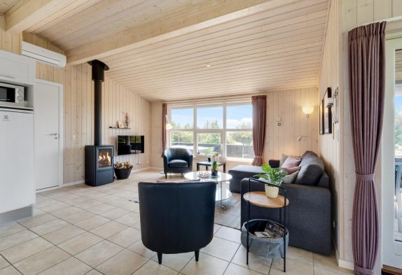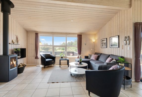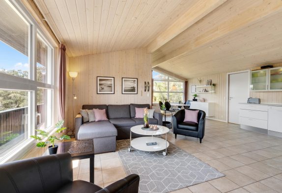 Ikke-ryger huset er renoveret i 2013 og byder jer velkommen med sin stilfulde og moderne indretning, som er kombineret med smagfulde deko-elementer. Klassiske trævægge og store, vinklede vinduer sørger for lyse og venlige omgivelser i opholdsrummet med stue, spiseafdeling og åbent køkken – her hersker der altid en behagelig atmosfære.