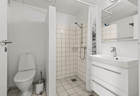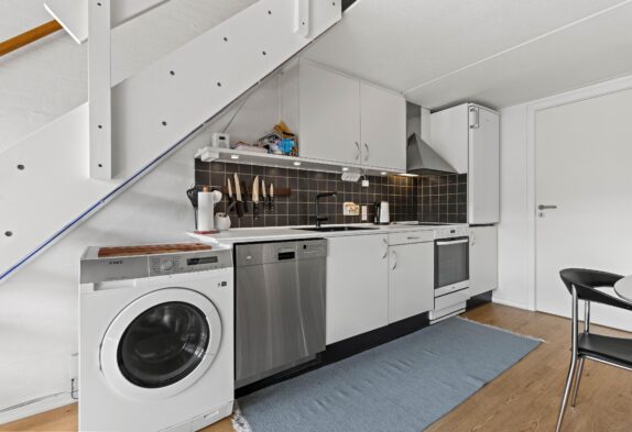 Når du træder ind i lejligheden, bliver du mødt af en lys og moderne atmosfære. Lejligheden byder på en flot indretning, samt lyse og rolige farver. Du har muligheden for at slappe af i det lækre sofaområde eller hygge dig med madlavning i det åbne køkken. Køkken og stue ligger i forlængelse af hinanden, hvilket giver dig og familien mulighed for at være sammen, selv om nogen laver mad og andre slapper af i sofaen.