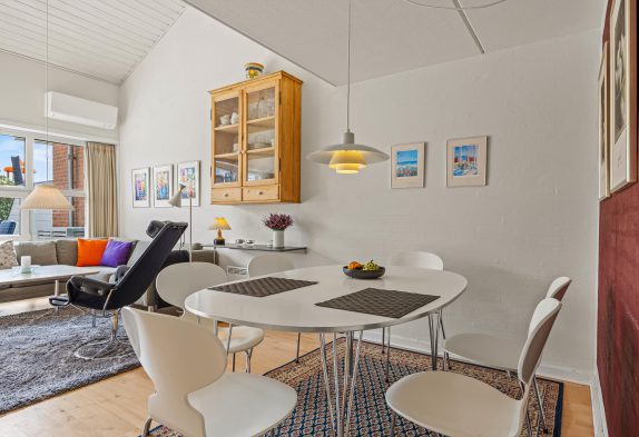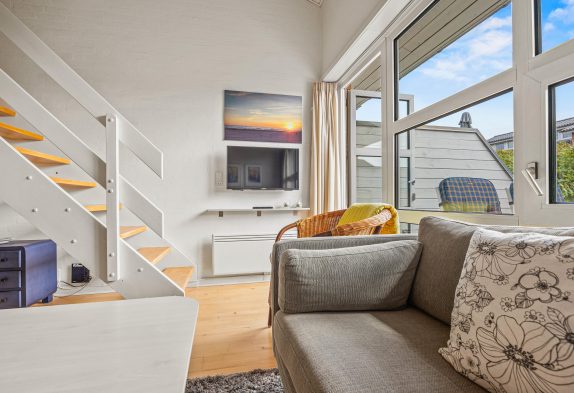 På Nordvej ligger Vejers Feriecenter – kun et stenkast fra Vesterhavet og med i alt 22 fine ferielejligheder. Denne hyggelige lejlighed har plads til 4 personer og er både lyst og venligt indrettet. Sammen med de andre ferielejligheder får I også gratis adgang til feriecentrets indendørs swimmingpool.