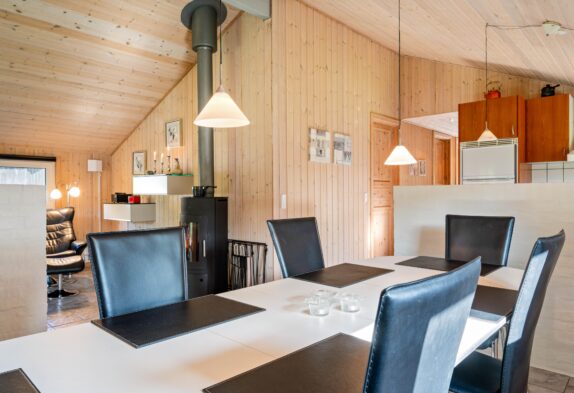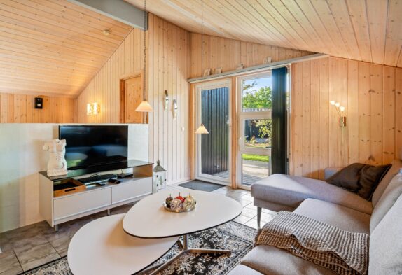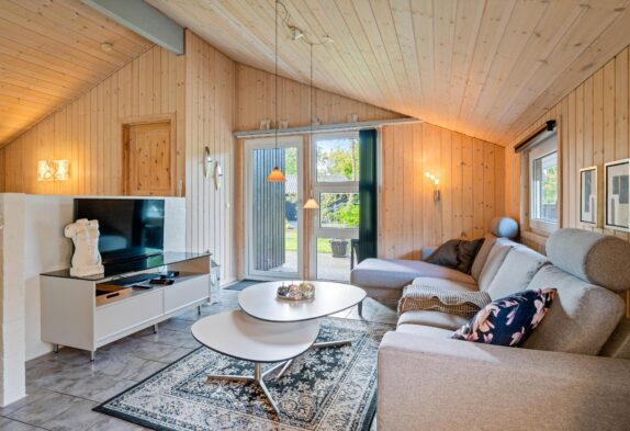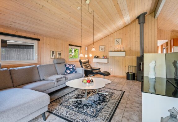 På Blåbærvangen 6 står dette fine sommerhus blandt de høje grønne fyrretræer. Huset er perfekt til en familie eller vennepar, er dejlig lyst og venligt indrettet og har tilmed spabad og sauna. Nyd ferien og solen i den lukkede have med to fine terrasser.