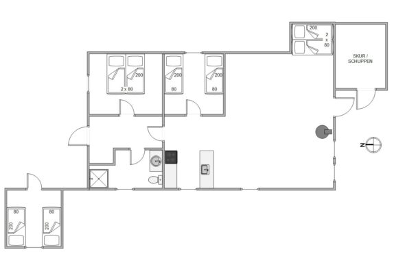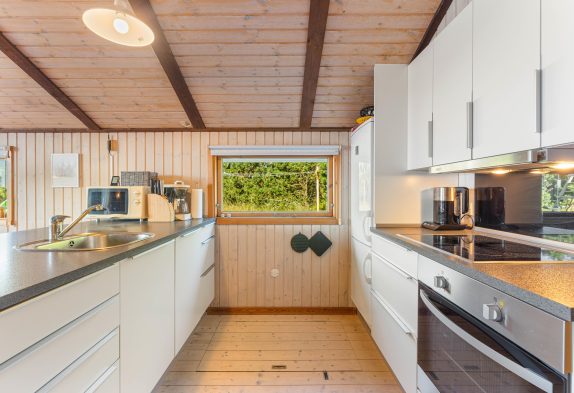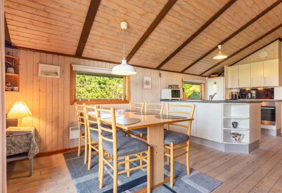 Selve sommerhuset er indrettet med to gode soverum og et hyggeligt gæstehus, som har to enkeltsenge. Badeværelset er lyst og dejligt indrettet. Her finder du også en vaskemaskine, som er med til at gøre ferien lidt lettere – særligt for dig, der har børn.
