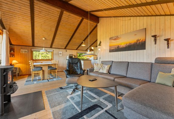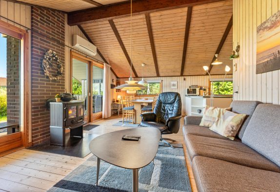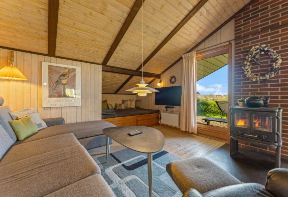 Køkkenet ligger i åben forbindelse med en hyggelig stue, som har både brændeovn og alkove. Alkoven er den perfekte hyggekrog på dage, hvor du gerne vil slappe af med en god bog eller måske tage en eftermiddagslur.