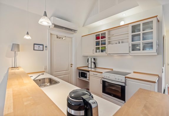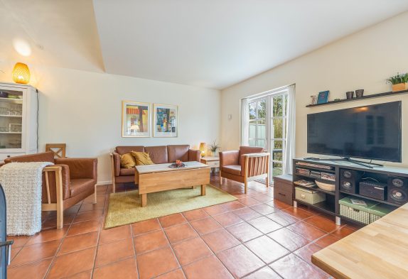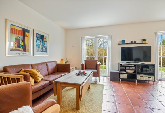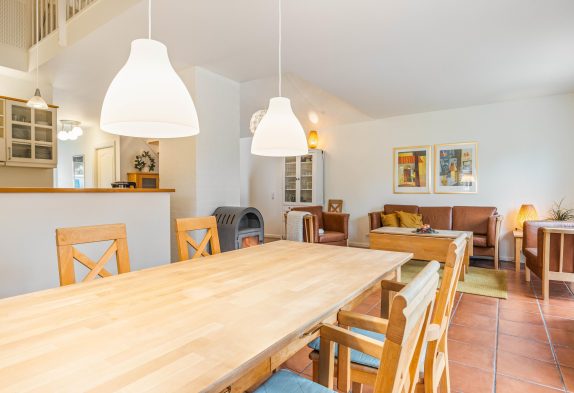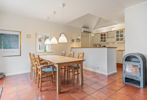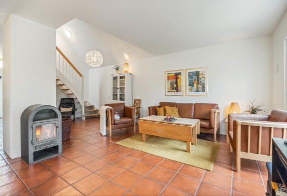 I det hyggelige sofahjørne er der lagt op til masser af gode feriestunder med filmaftener, kortspil og en god bog på en sen aften – og brændeovnens knitrende flammer vil sprede endnu mere varme og feriestemning, især i de kolde årstider.