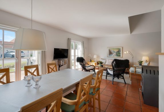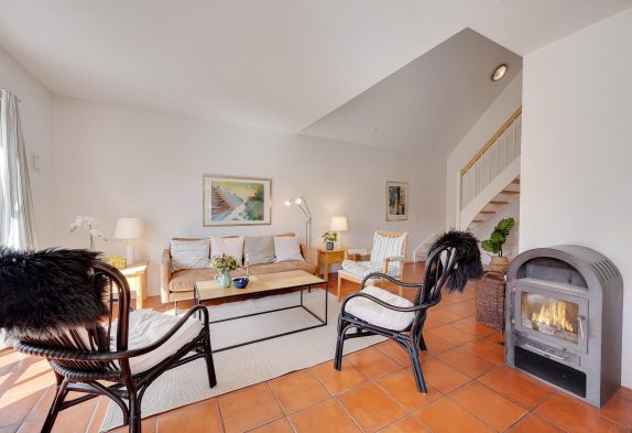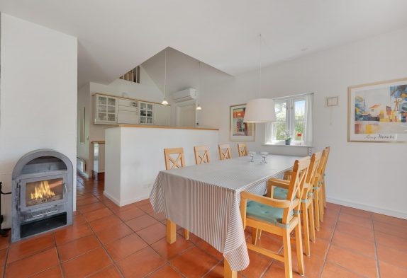 Husets hjerte er den hyggelige stue med fladskærms-TV og brændeovn, som især på de kolde og stormende dage vil sprede masser af varme og god feriestemning, mens regnen trommer på ruden, og I sidder i varmen med tæpper og en god film. Der findes også en energivenlig varmepumpe, der holder varme i huset, mens i er undervejs.