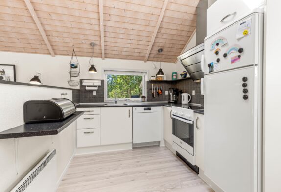 Huset rummer flere praktiske hjælpere, både gulvvarme i badeværelset, vaskemaskine og opvaskemaskine, som alle vil hjælpe til at gøre ferien endnu mere ukompliceret. Og mens der bliver taget hånd om de daglige pligter, kan I læne jer tilbage i det hyggelige sofahjørne og lytte til brændeovnens knitren, mens I nyder ferien og hinandens selskab.