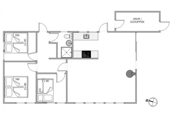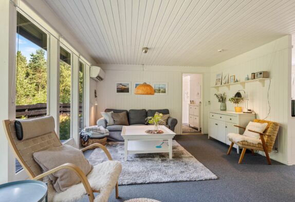 Her i dette feriehus forefindes både børneseng og højstol. Det ene køjerum er sågar indrettet med pusleplads og tremmeseng og i det andet finder I et langt skrivebord, så der er ekstra plads til hobby eller computer.