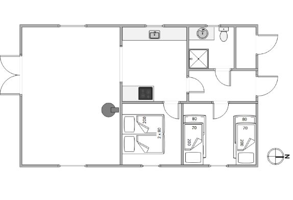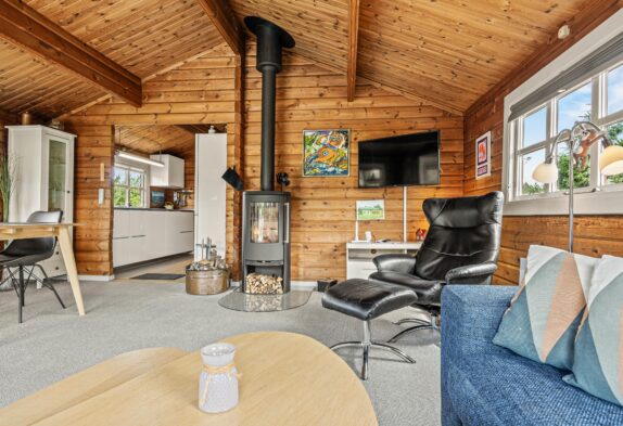 Sommerhuset er indrettet med fine, personlige detaljer, der skaber en hyggelig og charmerende stemning. Det forstærkes yderligere af de rå træplanker, der giver huset et varmt og imødekommende udtryk. Huset er indrettet med to soverum, hvoraf det ene har dobbeltseng og det andet to enkeltsenge.