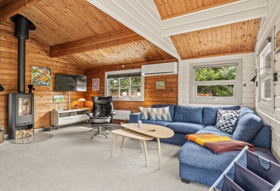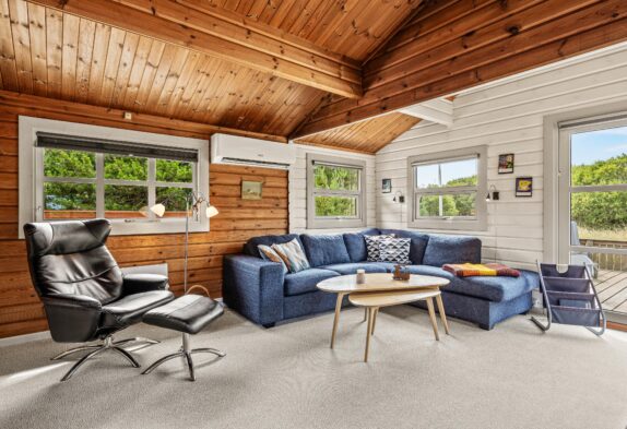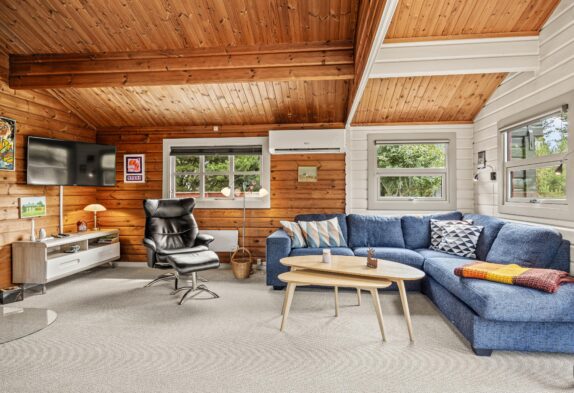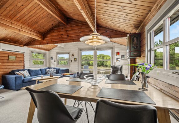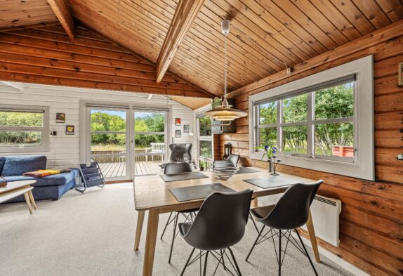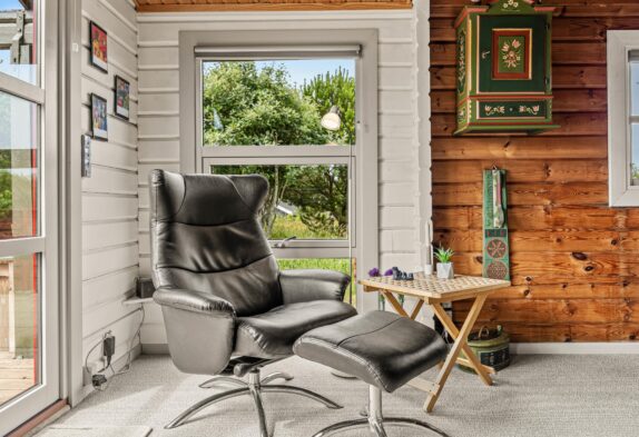 Fra stuen er der direkte udgang til sommerhusets dejlige naturomgivelser. Den ene terrasse skærmer for vejr og vind, og gør det muligt for jer at sidde ude fra det tidlige forår til langt ud på efteråret.