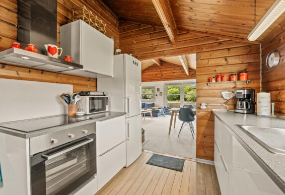 Den lille stue indbyder til familiehygge og nærvær. Stuen er et hyggeligt samlingssted, hvor I kan spille spil, slappe af med en god bog eller bare hygge, mens brændeovnen knitrer i baggrunden. Huset fik nyt køkken i 2017 og står nu flot og veludstyret med bl.a. mikrobølgeovn.