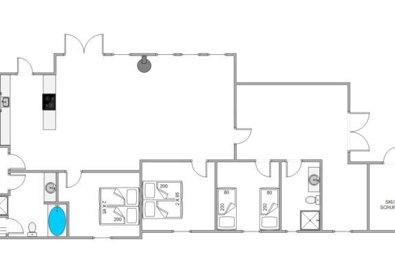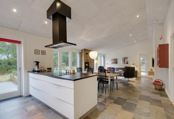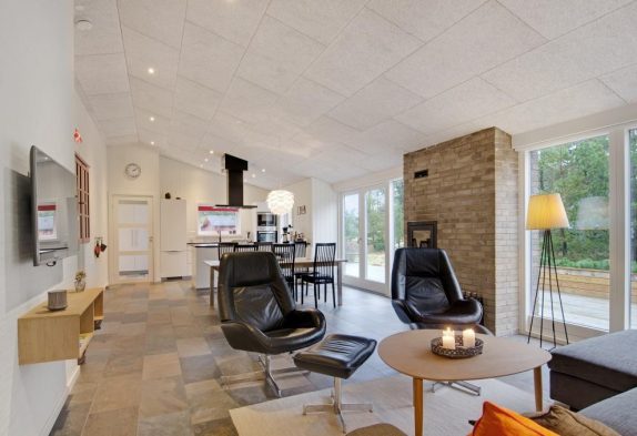 Det lækre luksushus er moderne og stilfuldt indrettet, og her er ikke sparet på noget. Der er tre rummelige soveværelse, hvoraf det ene er udstyret med fjernsyn. Feriehusets midtpunkt er den store opholdsstue med det åbne køkken, der råder over alt, hvad feriekokkene har brug for. På kolde dage sørger brændeovnen for varme og masser af feriestemning.
