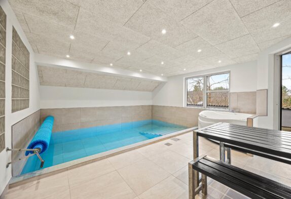 Flot og velholdt poolhus beliggende i Henneby – tæt på Henne Strand- og indeholder alt, hvad hjertet begærer. Sommerhuset er udstyret med en skøn wellnessafdeling med både pool, spabad og sauna, hvor vandhunde i alle aldre frit kan boltre sig. Også udendørs, hvor der er masser af legeredskaber og en udebruser, overbeviser sommerhuset på Strandgodsvej 4 i Henneby. Den energibesparende varmepumpe hjælper iøvrigt med at holde strømregningen nede, og ved hjælp af ladestanderen med type 2 stik, kan jeres medbragte elbil lades op til enhver tid.
