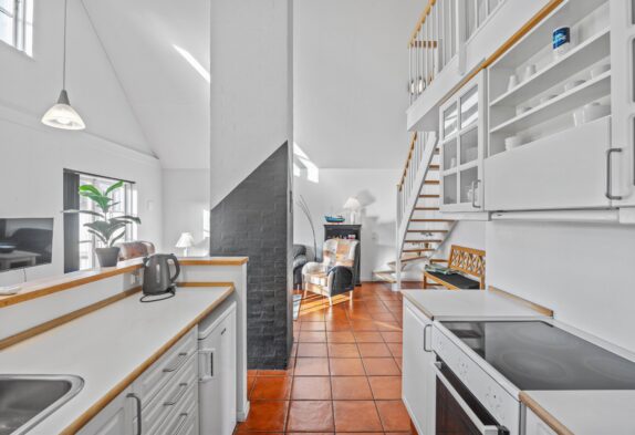 Den smagfulde og diskrete indretning giver en harmonisk atmosfære og giver gode og hjemlige rammer, så I kan falde godt til helt fra start. I stuen finder I endda en brændeovn, som især vil sprede varme og feriestemning på de kolde dage, mens I læser en bog i sofaen foran de knitrende flammer.