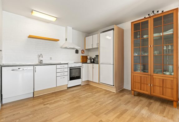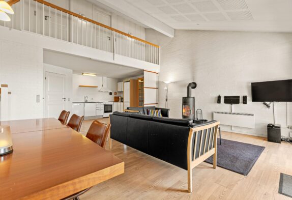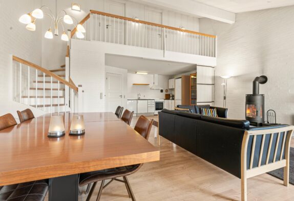 I husets indretning er der lagt stor vægt på hyggen, og det kan mærkes med det samme. Det veludstyrede køkken er forbundet med stuen og udgør husets hjerte. Her er der god plads til at lave mad sammen eller samle hele familien rundt om spisebordet til en runde kortspil.
