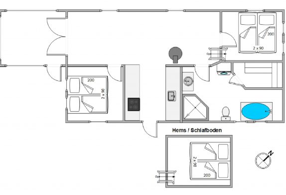 Hemsen er den perfekte hyggeplads til familiens børn. Her kan de trække sig tilbage og hygge med et spil, læse en bog eller streame en god film. Det lyse badeværelse har sin egen lille wellnessoase med både spabad og sauna. Vær opmærksom på, at spabadet skal fyldes med varmt vand, da det ikke varmer vandet op selv.