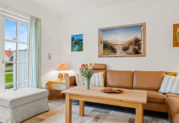Beliggenheden på Horns Bjerge 3-54 er helt perfekt: Det cremefarvede træhus med sine hvide sprossevinduer ligger i det charmerende Blåvands Lyst, og her bor I kun få minutters gang fra feriebyens hjerte med et hav af butikker, restauranter, caféer og fritidsaktiviteter såsom bowling.