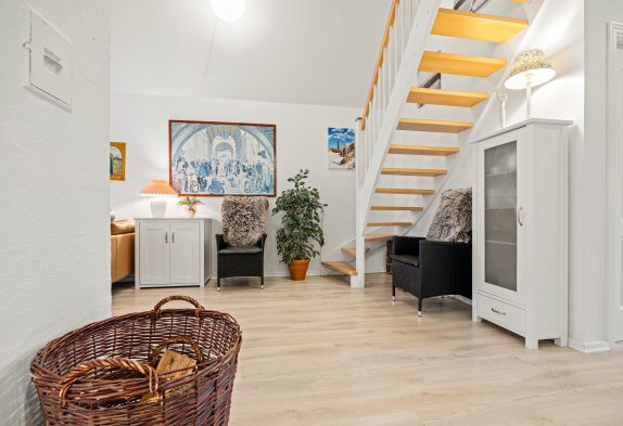 Centralt beliggende og med kort vej til strand og by danner dette feriehus rammer for en stilfuld og luksuriøs ferie med alt, hvad feriehjertet begærer. Her får I et lyst og venligt feriehus i to etager.