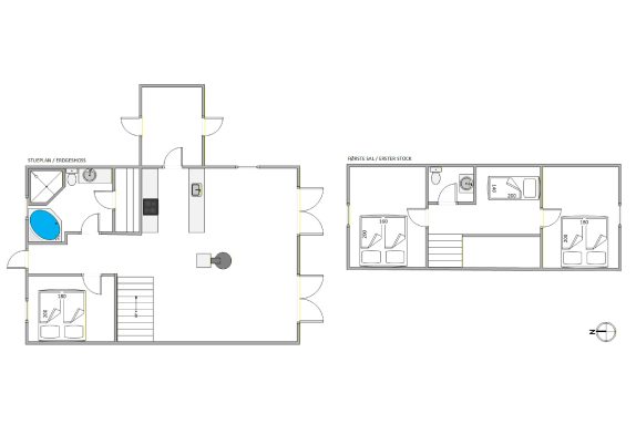 På 1. sal er der et nyt gæstetoilet til rådighed. Her finder I også en alkove med madras, som børnene vil elske at lege og hygge sig på. Her er desuden 2 store rummelige værelser.