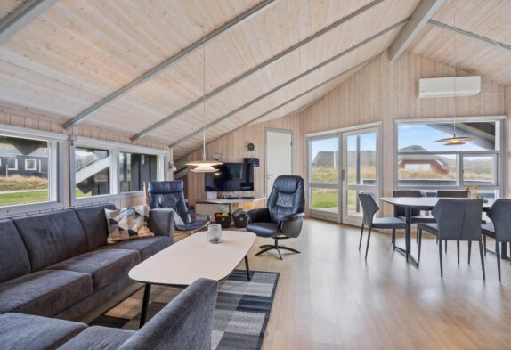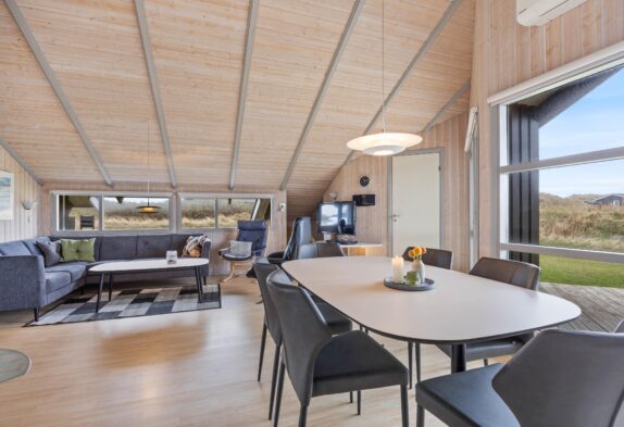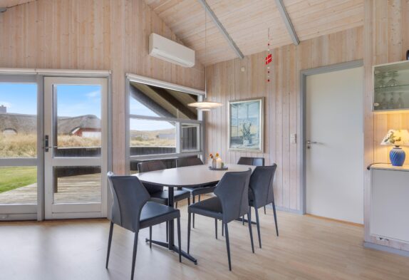 Få en god start på dagen med en god morgenmad på terrassen, mens I nyder den dejlige udsigt til klitterne, som ligger tæt på huset. Fra husets anden terrasse er der også en fantastisk udsigt ud over markerne mod øst. Mens de voksne drikker en kop kaffe eller sørger for, at grillen bliver tændt, så hele familien kan samles til aftensmaden, kan børnene lege på græsplænen, have det sjovt på gyngen og bygge en borg i sandkassen.