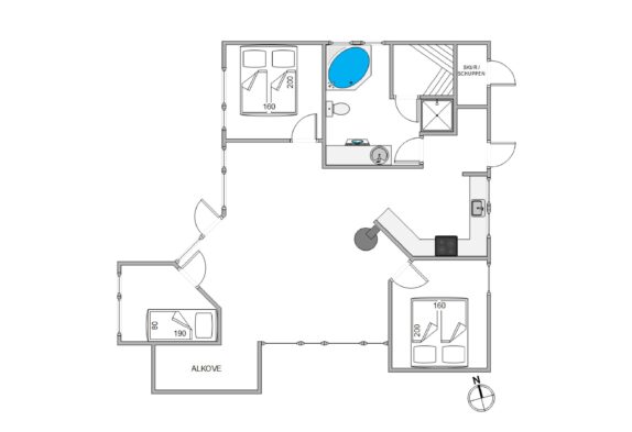 I soveværelserne er der to dobbeltsenge og en enkeltseng samt store skaber til ferietøjet. Skal der vaskes noget under ferien, er der en vaskemaskine i badeværelset. Her findes desuden det dejlige spabad og der er tilgang til husets sauna, som byder på dejlig varme efter en lang tur på stranden.