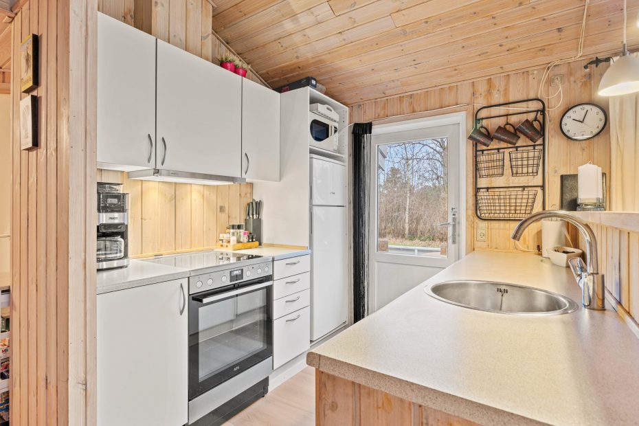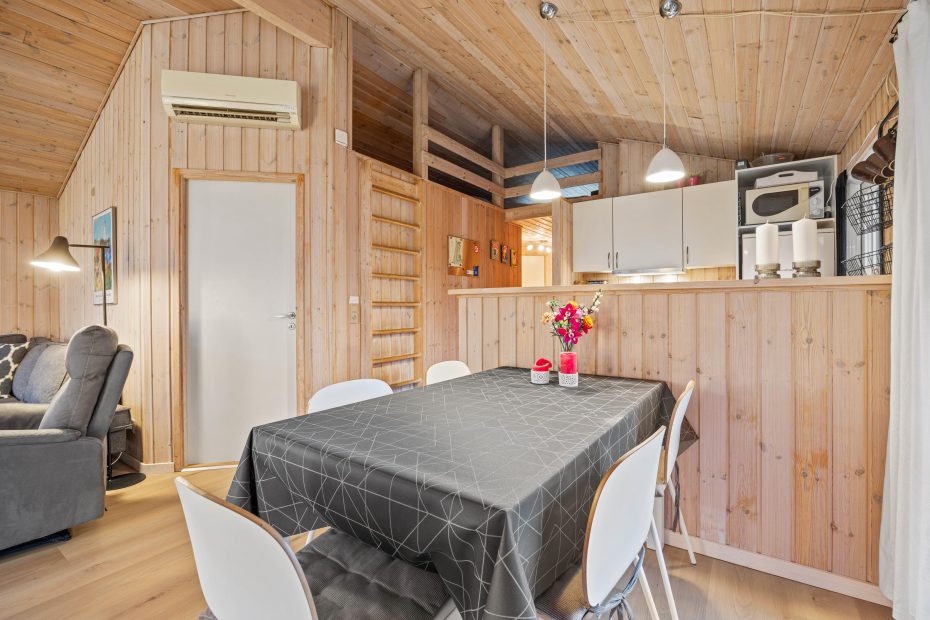 I sommerhusets opholdsrum kan I samles til hyggelige feriestunder for hele familien. Her kan I blandt andet være sammen om madlavningen eller se en god film i tv’et – I kan streame jeres yndlingsfilm takket være Chromecasten. I opholdsrummet sørger brændeovnen for at sætte prikken over i’et for den hyggelige feriestemning.