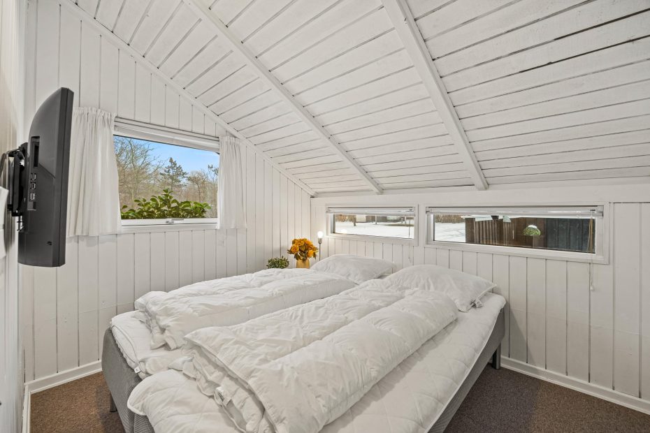 I dette klassiske sommerhus kan der bo 6 personer fordelt på 3 soveværelser, 2 værelser har enkeltsenge og 1 værelse har en dobbeltseng. Det åbne køkkenalrum inviterer til god madlavning samt hyggelige samtaler over gryder og spillekort. Huset fik renoveret køkken i 2022, som nu indeholder både opvaskemaskine og køle- og fryseskab.