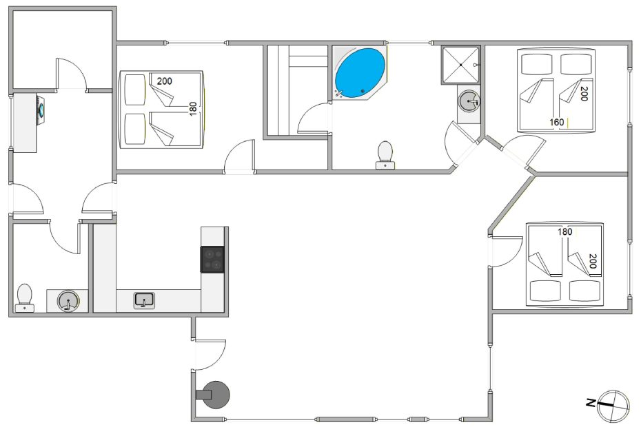 Sommerhuset byder på 3 soveværelser, hver smagfuldt indrettet med en komfortabel dobbeltseng, hvilket sikrer alle gæster en god nattesøvn. Det er også klar til børnefamilien med både en højstol og en barneseng til rådighed. For at holde styr på garderoben gennem hele ferien, står vaskemaskine og tørretumbler klar til jeres brug.