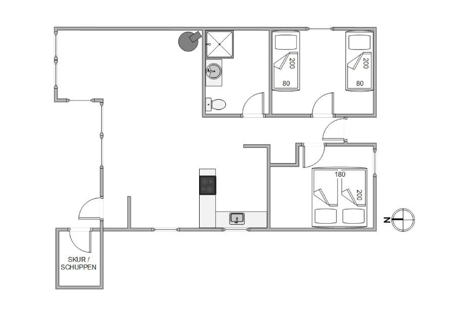 Sommerhuset tilbyder også et fint badeværelse med alle nødvendigheder, så I kan starte dagen, forfriskede og veloplagte. Med 4 sovepladser fordelt på 2 lyse og hyggelige soverum, er der rigeligt med plads til både afslapning og natlig ro, så alle vågner op med fornyet energi til en ny dag i ferielandet.