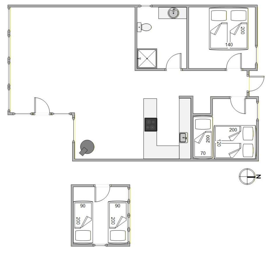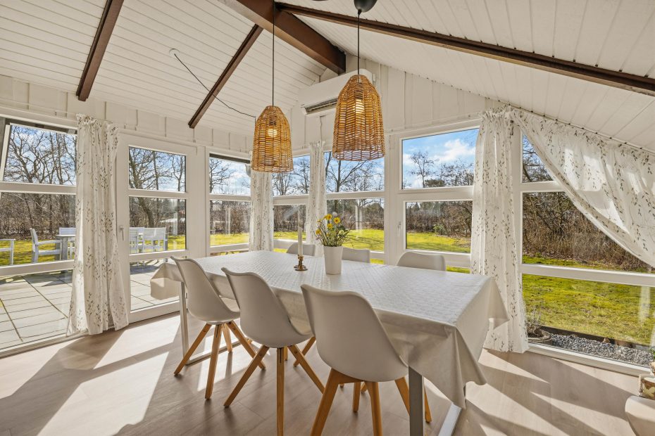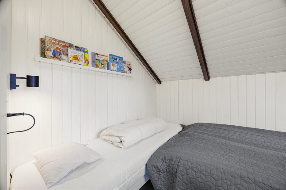 Feriehuset rummer 2 soveværelser: ét med dobbeltseng og ét med både dobbeltseng og enkeltseng – perfekt til børn, der gerne vil dele værelse. Derudover er der et anneks med 2 enkeltsenge, som giver ekstra plads til teenagere eller gæster, der ønsker lidt privatliv.
