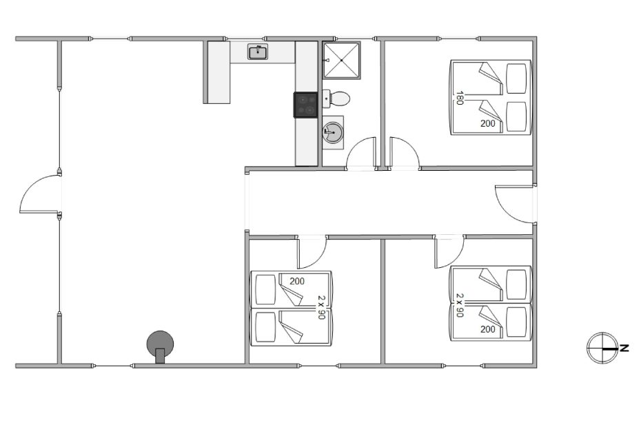 I det 84 kvadratmeter store feriehus venter jer 3 gode soveværelser med dobbeltsenge, hvor I kan få jer en god nats søvn, så I kan få samlet ny energi til jeres næste feriedag i Houstrup. Jeres feriemorgener starter uden kolde fødder, da der er gulvvarme på feriehusets badeværelse.