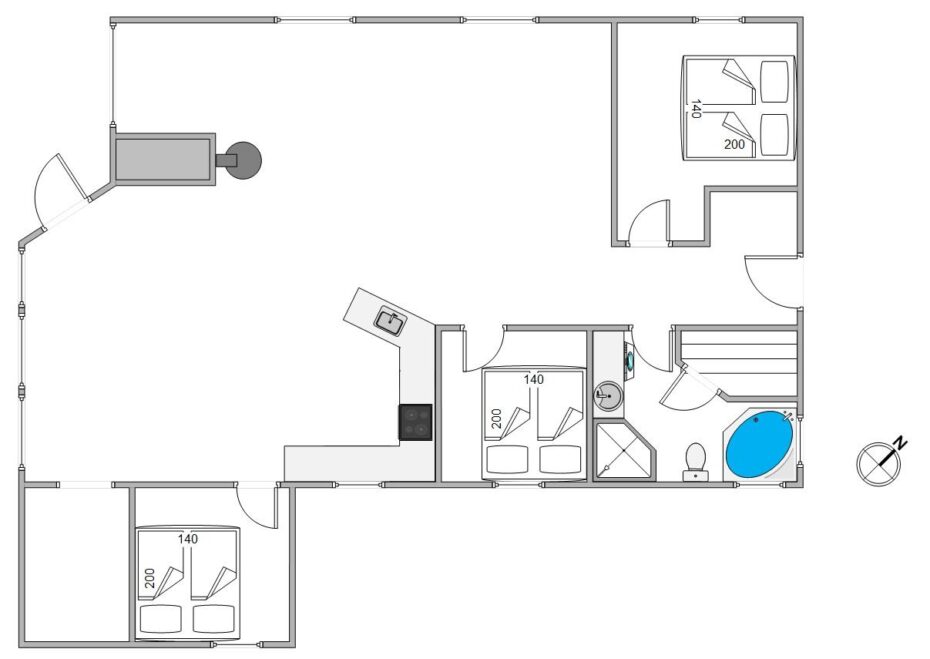 De tre soveværelser med 140×200 senge i hver sikrer jer alle en god nats søvn og tilbyder den perfekte komfort til både venner og familie.