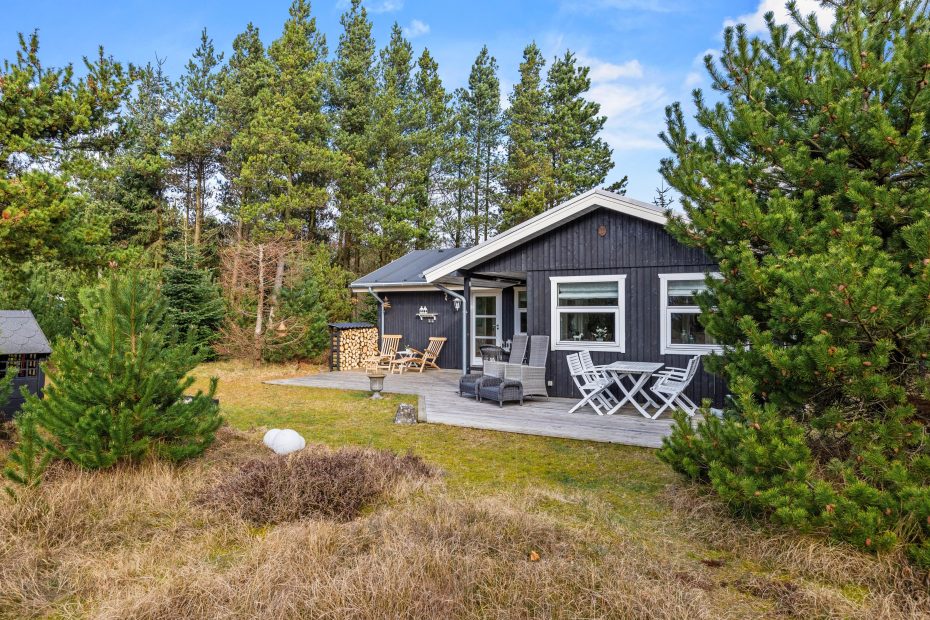 Det hyggelige sommerhus med de sortmalede brædder står godt gemt væk blandt de høje træer i Houstrups rolige ferieområde. Den charmerende stil er helt gennemført både indenfor og udenfor, og idyl og hygge er begge absolutte nøgleord. For at gøre ferien ekstra afslappende, er huset endda udstyret med en sauna.