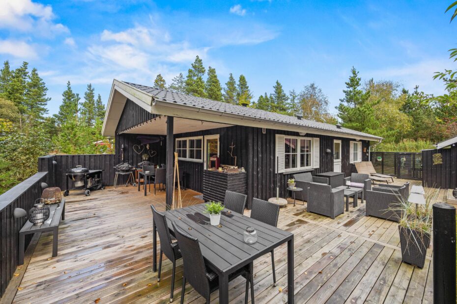 Sommerhuset har 2 skønne terrasser med havemøbler og liggestole. Den ene terrasse er vestvendt og overdækket, så I kan kravle i skygge med en god bog, eller stå i læ med grillen. Den anden terrasse er sydvendt og afskærmet, hvor I kan nyde den dejlige sol fra morgenstunden med en god kop kaffe.
