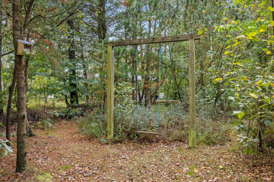 Feriehuset er beliggende på en 1.364 kvadratmeter stor grund i det naturskønne Houstrup. På jeres ferie vil I have masser af privatliv, da grunden er omkranset af høje træer. På sommerhusets græsplæne er der god plads til sjov og leg med hunden.