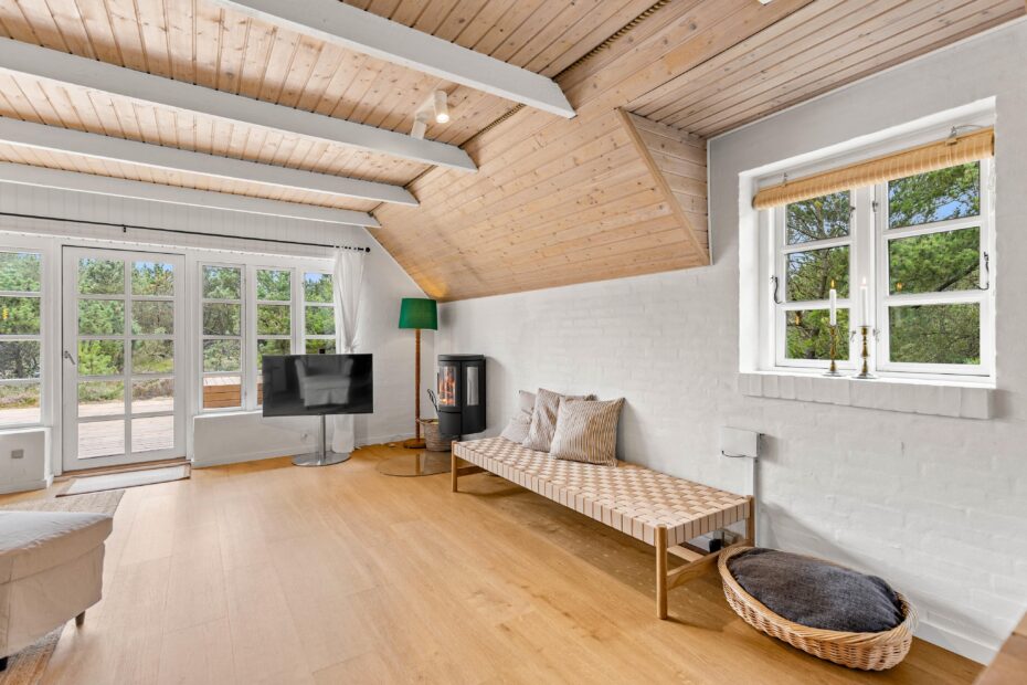 Sommerhuset er lyst og indbydende med en åben planløsning, hvor køkken, spisestue og stue flyder sammen i ét rum. Dette giver jer mulighed for at tilberede måltider, mens I holder øje med dagens brætspil ved spisebordet.