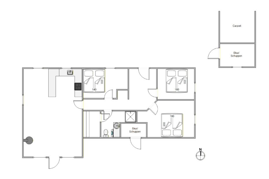 Sommerhuset oser af hygge og inviterer til afslappende feriedage i rolige omgivelser. Der er tre soveværelser i huset, hvor to af dem har dobbeltsenge og et har to enkeltsenge. Badeværelset er udstyret med en vaskemaskine, så I kan holde jeres tøj rent gennem hele opholdet.