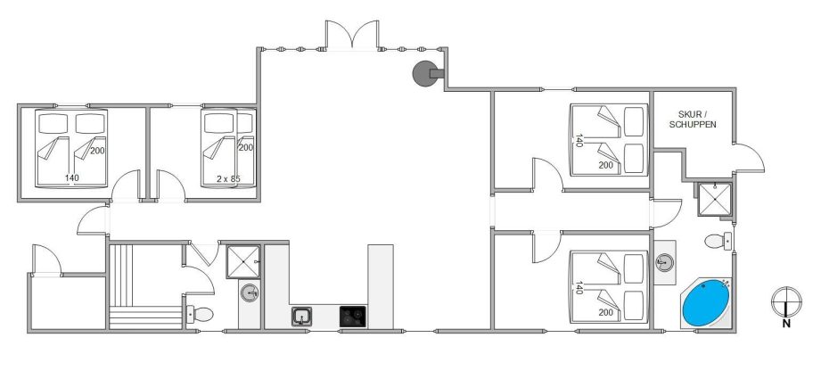 På Søndervang 115 i Houstrup ligger dette skønne sommerhus med et areal på hele 113 kvadratmeter og plads til op til 8 personer. Den gode rumopdeling egner sig rigtig godt til, at to familier eller vennepar kan tage afsted sammen. I det største badeværelse med sauna og spabad kan I rigtig slappe af og give slip på hverdagens stress.