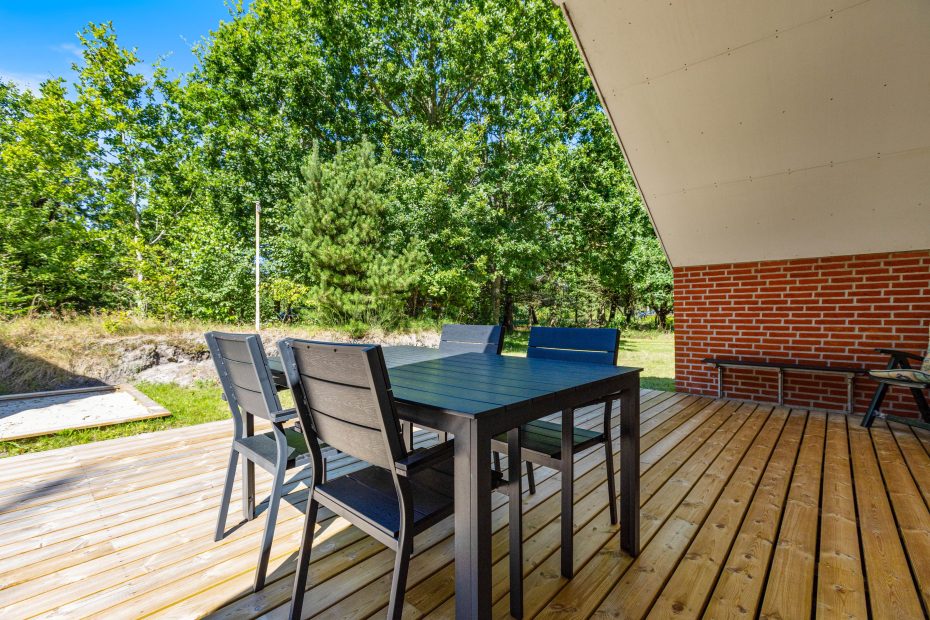 Terrassen løber næsten hele vejen rundt om huset, og her kan I følge solen hele dagen og nyde hver eneste solstråle fra havemøblerne. Huset er også udstyret med en grill, så I kan holde en grillaften i det lune sommervejr.