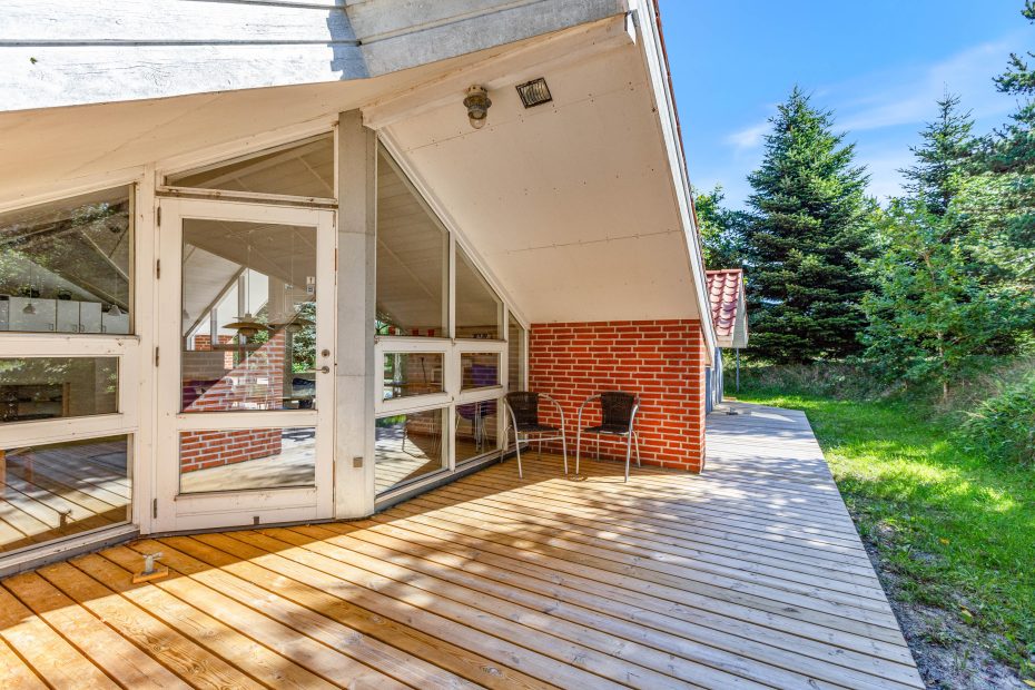 Tolles Ferienhaus direkt am Rand des Feriengebiets. Das Grundstück ist kaum einsehbar und bietet einem ausreichend Privatsphäre. Durch eine Terrasse auf drei Seiten kann man überall die Sonne genießen wenn sie scheint. Durch große Fenster ist es auch im Inneren hell und wunderschön lichtdurchflutet.