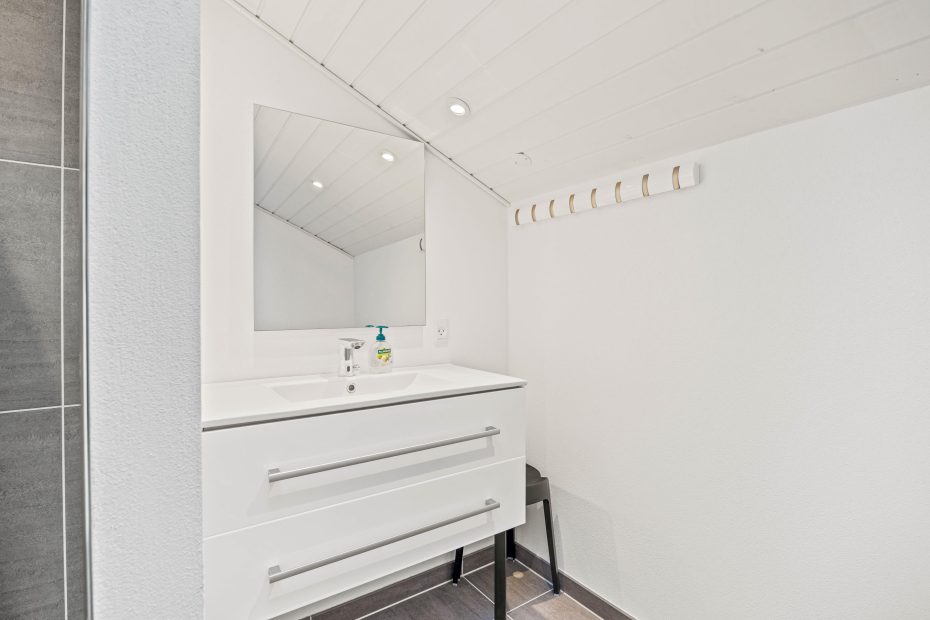 Der er 2 gode badeværelser med gulvvarme og bruseniche, og det ene har endda dobbelt håndvask. En vaskemaskine står også til rådighed, så I ikke behøver at medbringe den store kuffert. De 5 hyggelige og godt indrettet soveværelser giver god plads til alle gæster.