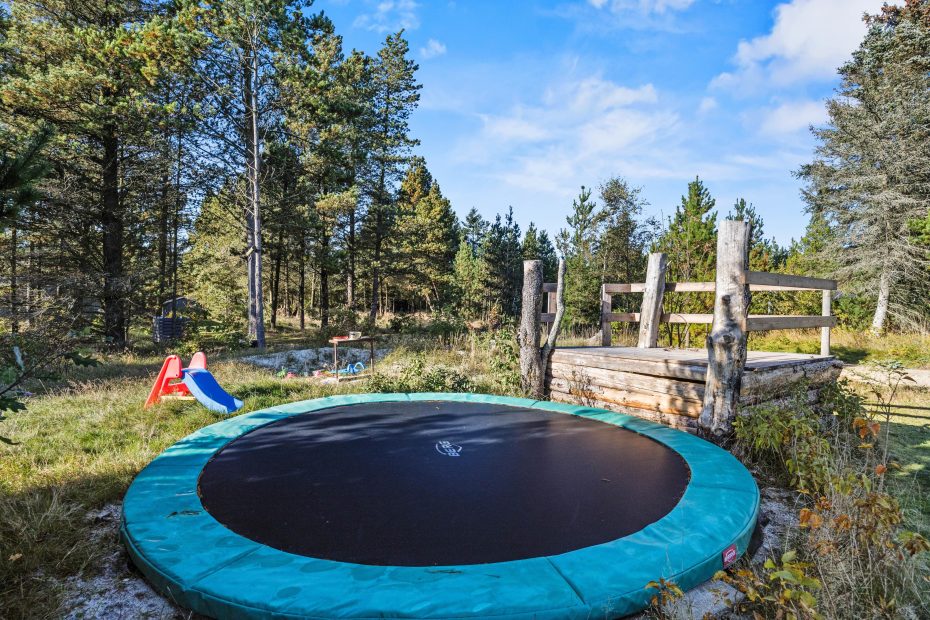 Den 2300 m² store naturgrund med græsplæne giver plads til både afslapning og udendørs aktiviteter. Børnene kan lege i timevis på trampolinen, mens der står en shelter til rådighed til jer, der vil have en overnatning i det fri. Komfortable havemøbler og liggestole giver mulighed for rigtig at nyde haven. Flere terrasseområder står til rådighed – den lukkede terrasse er ideel til hundene, ligesom grunden, der er delvist indhegnet.