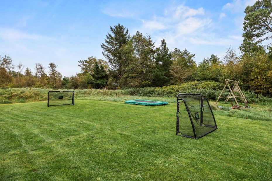 Her er der plads til at boltre sig udendørs på den 1752 kvadratmeter store naturgrund. Ejendommen grænser op til et grønt område og en skov, hvor I kan gå en god tur.