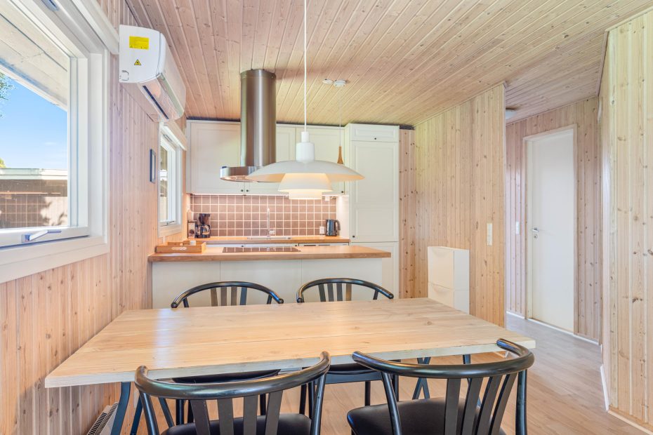 I dette skønne feriehus vil både I og jeres hunde føle jer hjemme fra første instans. Stue og køkken med tilhørende spiseplads hænger flot sammen og med det praktiske laminatgulv, er der altid en kølig plet for jeres hunde til en lille lur. Soveværelserne er indrettet i hjemlig stil med masser af lys, hvilket give gode muligheder for en behagelig søvn.