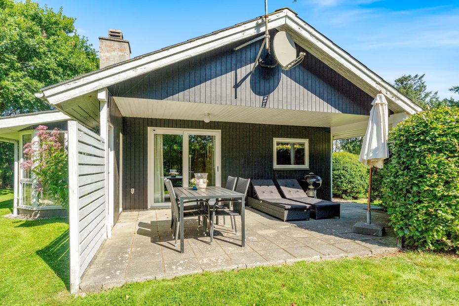 Afskærmet af træer og buske ligger dette mindre feriehus på Torskevej 3 i idylliske Vejers med plads til 5 personer og jeres to hunde.