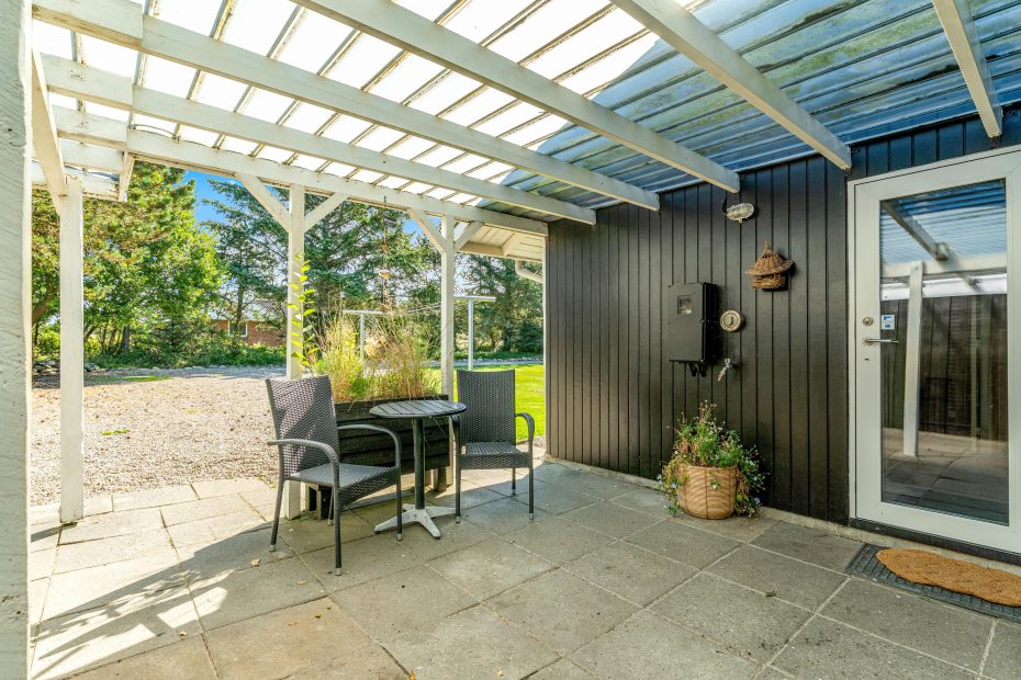 Dette hus er helt ideelt for jer, der nyder at komme ud i den friske luft. Med sine afskærmede og delvist overdækkede terrasser indbyder det til gode udendørs stunder – om det er aktivitet eller en lille lur.