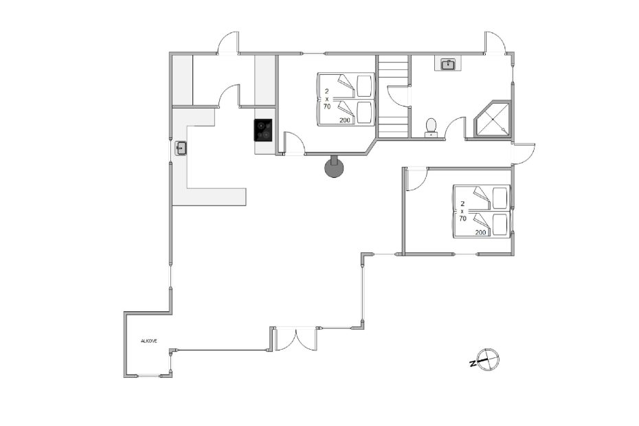 Fra badeværelset er der indgang til sommerhusets helt egen sauna, hvor I kan slappe af og samle ny energi på ferien. Læn jer tilbage i varmen efter en gåtur i den salte havluft eller rund dagen af med et saunabesøg, inden I kravler under dynen.