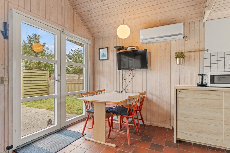Køkkenet er udstyret med opvaskemaskine, så det ikke tager mange minutter at klare oprydningen efter maden, og I i stedet kan smide benene opad i sofaen. På badeværelset er der gulvvarme, så I ikke fryser fødderne, når der skal børstes tænder om morgenen. I soveværelset er der 2 enkelte senge. Boende lige ved havet, bliver der sikkert badet ofte.