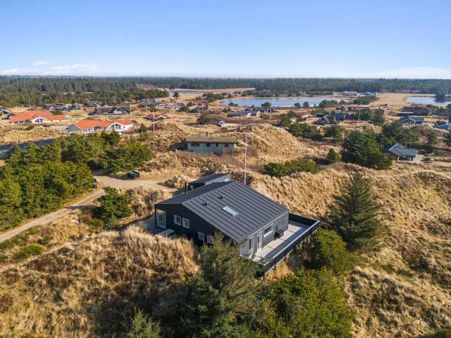 Det første, I lægger mærke til, er lyset. På Tyttebærvej 6 står et nybygget feriehus fra 2022, hvor huset er tilpasset klitlandskabet og udnytter omgivelserne med store panoramavinduer og et elegant, vellykket arkitektonisk udtryk. Med 116 m2 får I en let og indbydende ramme om ferien, hvor design og funktion går hånd i hånd – og hvor I hurtigt mærker, at hverdagen bliver mindre vigtig.