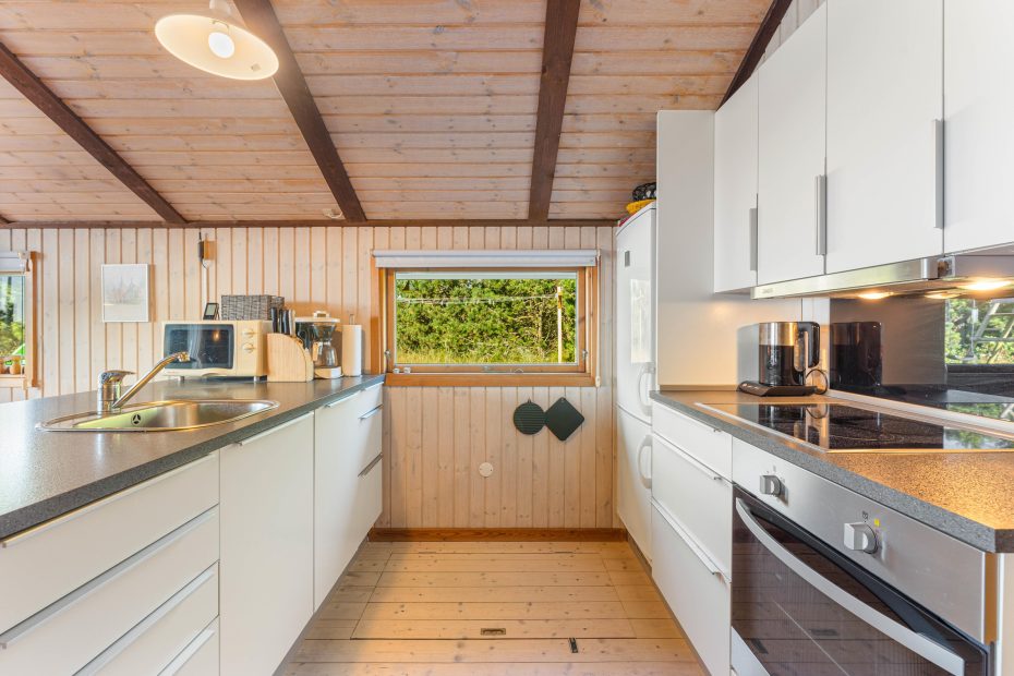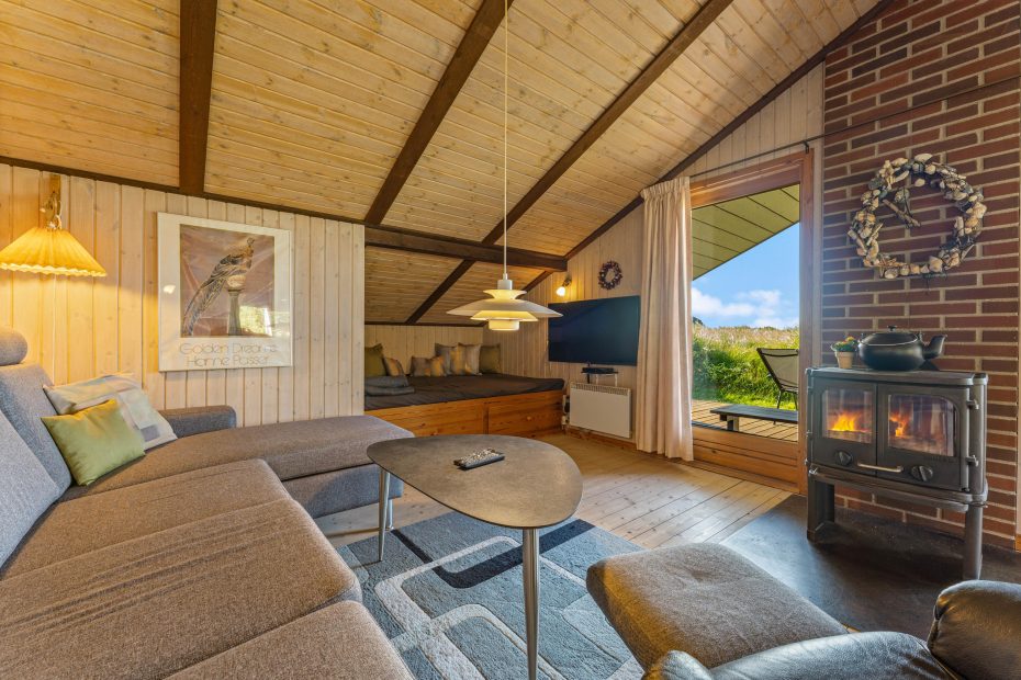 Køkkenet ligger i åben forbindelse med en hyggelig stue, som har både brændeovn og alkove. Alkoven er den perfekte hyggekrog på dage, hvor du gerne vil slappe af med en god bog eller måske tage en eftermiddagslur.