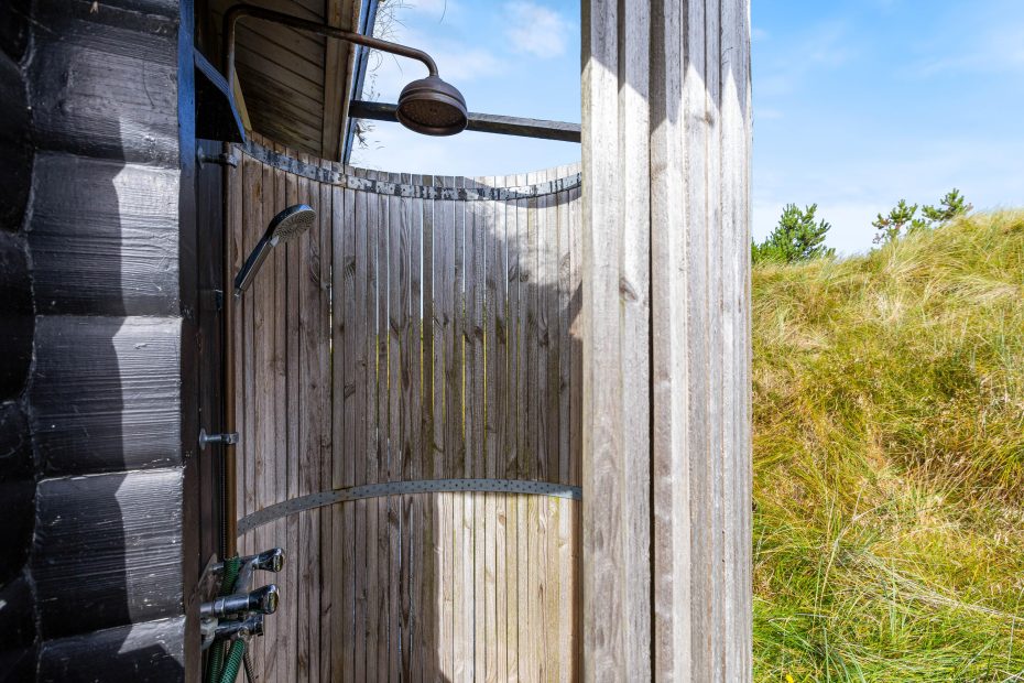 Omkring huset finder I flere hyggelige lækroge, hvor I kan sidde helt uforstyrret og nyde det smukke naturlandskab. På terrassen finder I også en dejlig udebruser. Den udendørs bruser er helt genial på varme dage, hvor I har været ved stranden og gerne vil skylle saltvandet af jer – eller hvis I bare gerne vil køles lidt af på en hed sommerdag. Udebruser er lukket fra 1. november til 1. april på grund af frosten.