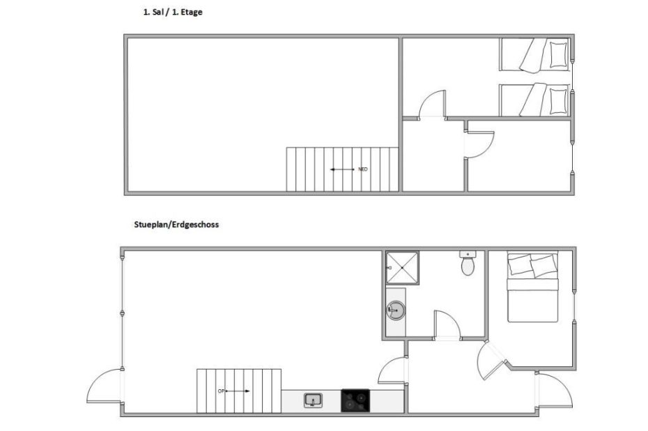 Ikke-ryger boligen er et super valg til den lille familie eller kæresteparret, der gerne vil holde ferie tæt på vandet. Her får I to etagers lyse og venlige omgivelser med et kombineret opholdsstue- og køkkenområde, to fine soveværelser og et toilet.